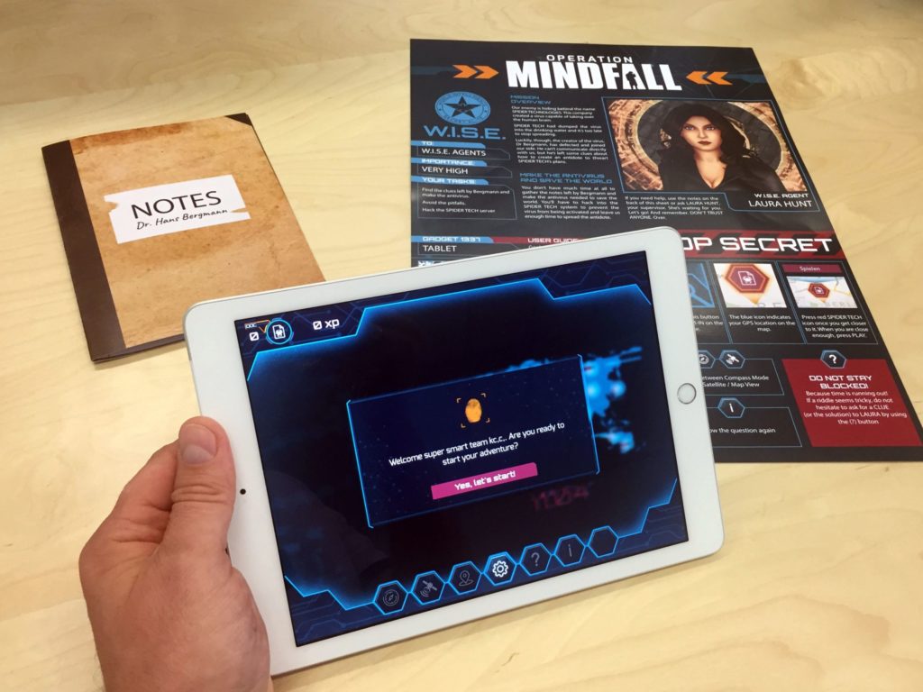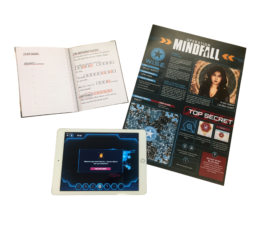 Nous avons besoin de votre aide pour l’opération Mindfall ! Notre ennemi se cache sous le nom de SPIDER TECHNOLOGIES. Cette entreprise a créé un virus capable de prendre le contrôle du cerveau humain… Le virus a été lâché dans l’eau potable, il est déjà trop tard pour en arrêter la propagation. Il faut vite trouver une solution ! D’une durée d’environ 2h, l’Opération Mindfall peut se jouer avec ou sans limite de temps !